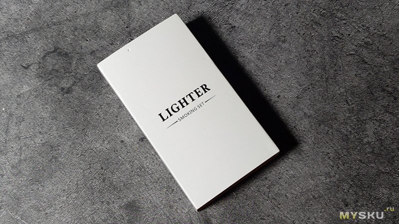 Зажигалка внутри лежит в картонном ложементе, будучи обёрнутой в прозрачный пакет.