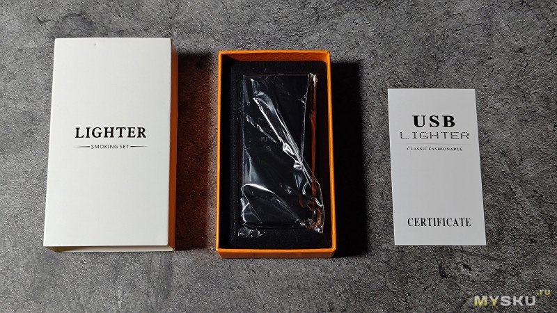 В комплекте поставки сама зажигалка и USB-кабель для зарядки встроенного аккумулятора.