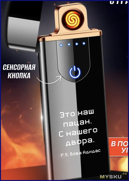 Зажигалку со столь специфической надписью меня попросили заказать, и по итогу уйдёт в качестве подарка. Пользуясь возможностью, решил сделать на неё небольшой обзор, так как в принципе у меня никогда не было импульсных зажигалок, стало интересно.