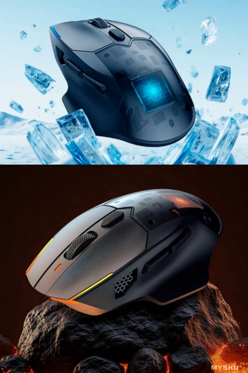 Мышь определённо глянется игроманам, особенно кто играет в какие-нибудь ММОRPG-проекты, благо здесь стоят долговечные переключатели, хороший и точный сенсор и присутствует возможность перепрограммирования клавиш. Причём клавиш с симметричной компоновкой, чтобы левши тоже могли полноценно пользоваться «грызуном». Материалы у корпуса приятные к руке, но модель явно рассчитана как-будто для крупных ладоней рук. Впрочем, возможно это дело привычки и сноровки. Наличие дисплея — удобно, инновационно, можно видеть какое сейчас установлено разрешение сенсора или частота опроса, но наверно как бы и всё, в остальном — фича скорее для красоты. Но я бы предпочёл дисплей, вместо утыканных повсюду RGB-светодиодов. Беспроводную зарядку затестить нечем, однако идейным противникам проводов возможно будет интересно. Среди минусов отмечу отсутствие отсутствие Bluetooh соединения и довольно большой для мышки вес.