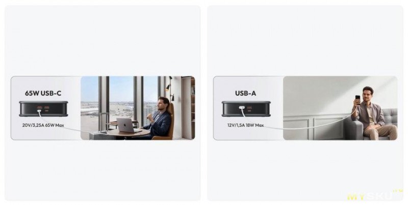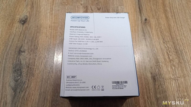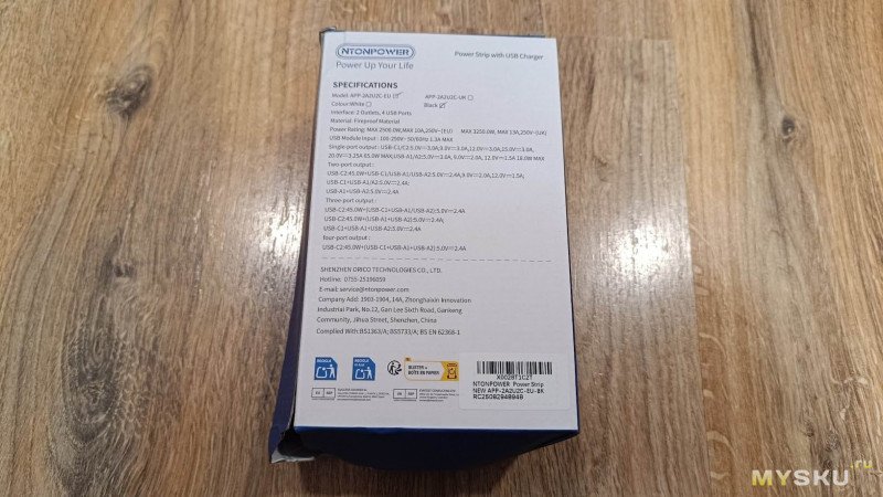 Разница в оформлении коробок становится заметной лишь сзади. Помимо разного набора USB портов, удлинители имеют и разные их характеристики. Тот удлинитель, что находится в коробке поменьше, имеет более продвинутый зарядный блок, с максимальной мощностью 65 Вт. Во втором случае всё гораздо скромнее — всего лишь 15 Вт в пике. Зато розеток 4, а не 2. Так что выбирайте по потребностям.