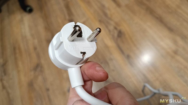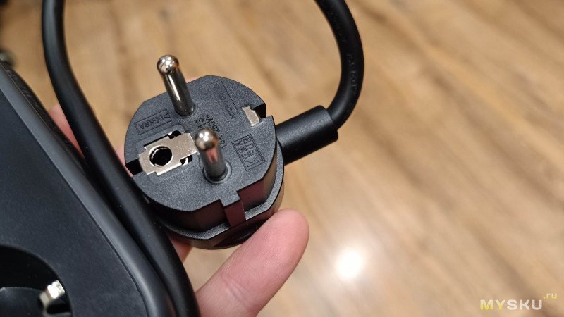 Вилки у удлинителей одинаковые: толстые штыри, заземляющие контакты и электрические параметры 10 А, 250 В.