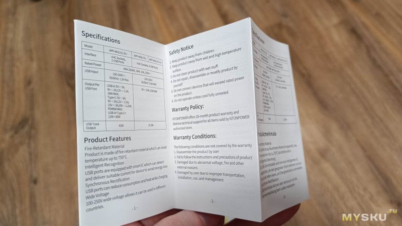 Как я уже писал, у 2-х розеточного удлинителя зарядный блок более прогрессивный. Изготовлен он по GaN технологии, а писать нужно именно так, с маленькой «a», так как это обозначение химической формулы соединения веществ — Нитрида Галлия. Такие ЗУ имеют более компактные габариты, чем их кремниевые собратья при равной мощности. Максимальные выходные параметры портов USB приведены на изображениях ниже.
