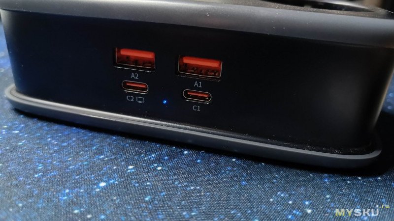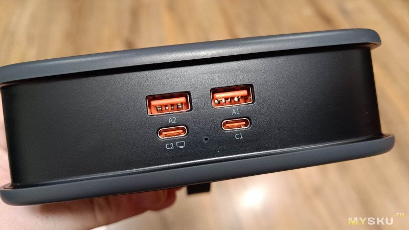 Чуть меньше, чем было обещано — 4,9 В при 3,0 А. Ну да это и не эталонный прибор для измерения. Порты USB-A выдают на ампер меньше при том же уровне напряжения — по 2 А.