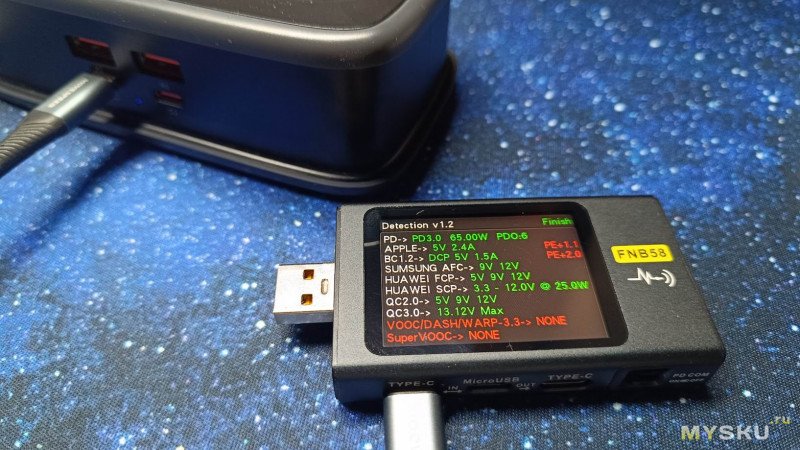 Тестер зафиксировал поддержку следующих протоколов быстрой зарядки: