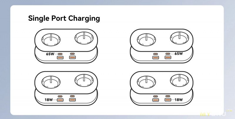У меня дома уже есть несколько удлинителей подобного плана — с встроенными USB портами. Удобство подобных устройств переоценить сложно. Производители различных гаджетов и устройств, начиная от смартфонов и беспроводных наушников, заканчивая бритвами и фонариками, перешли на унификацию зарядных портов в виде USB/Type-C с поголовным отказом от комплектации своих товаров зарядными устройствами. За исключением смартфонов, которые с каждым годом прибавляют в скорости зарядки, другим устройствам быстрая зарядка не особо важна и нужна, поэтому подобные встроенные в удлинители решения подойдут в самый раз. Хотя один их этих удлинителей оснащён по настоящему быстрой 65 Вт PD GaN зарядкой, которой сейчас и не всякий смартфон может похвастаться.