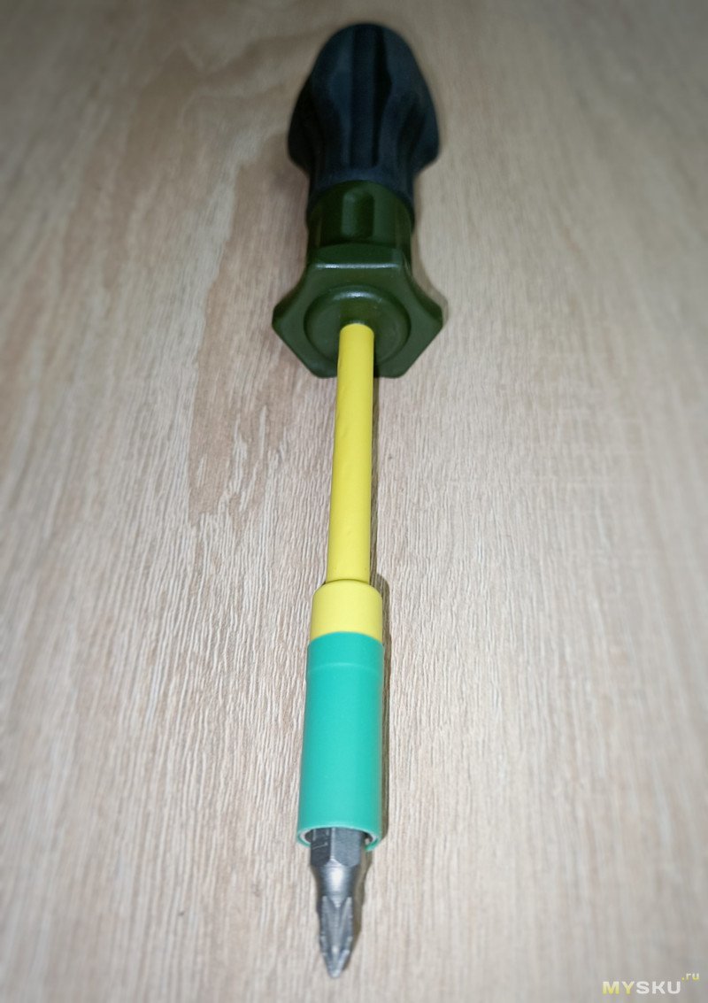 В общем и целом держатель/отвёртка понравилась, думаю докупить ещё и с гибким стержнем — порой надо. :)