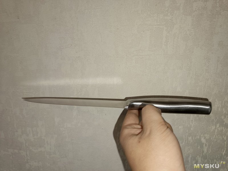 Нужно понимать, что это китайская сталь и она не очень жесткая, потому не надо пытаться рубить кости мяса, для этого есть кухонные топорики.