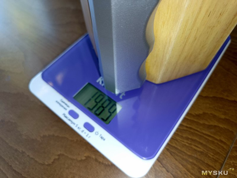 Весит весь комплект 2 килограмма. Если не хотите использовать с подставкой, то ножи магнитятся и их можно будет зафиксировать на магнитной рейке для ножей.