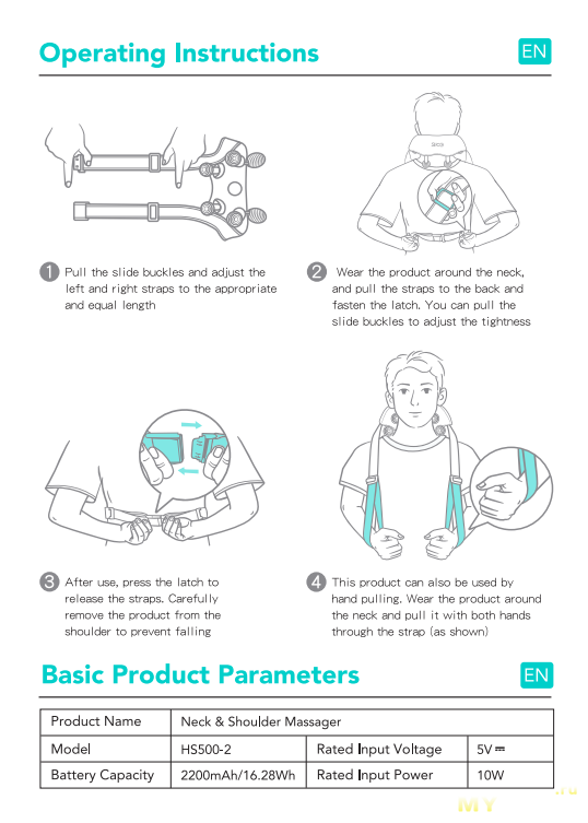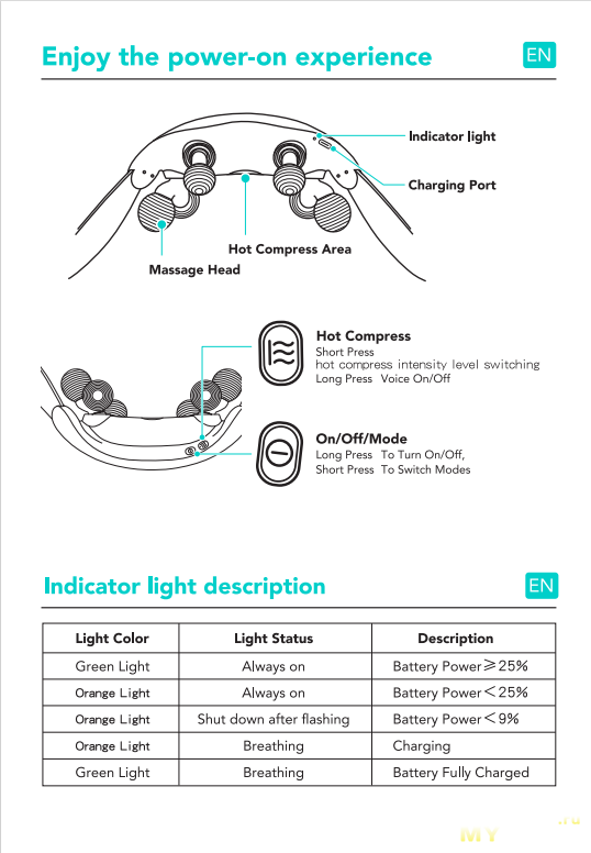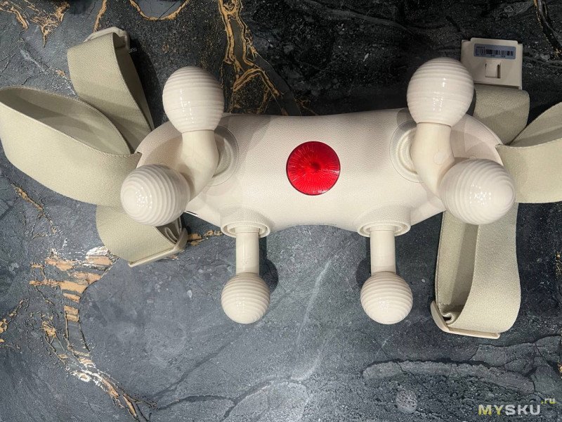 К плюсам данного устройства, сразу можно отнести наличие ремня с креплением. На днанный момент это единственный массажер области шеи с адекватным ремнем, остальные приходилось либо принудительно придерживать руками, либо мудрить с креплениями.Основные функции