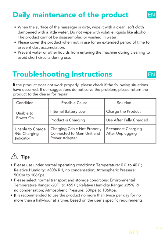 Зоны массажа: шея и плечи(по инструкции), поясница, ноги (доп.).