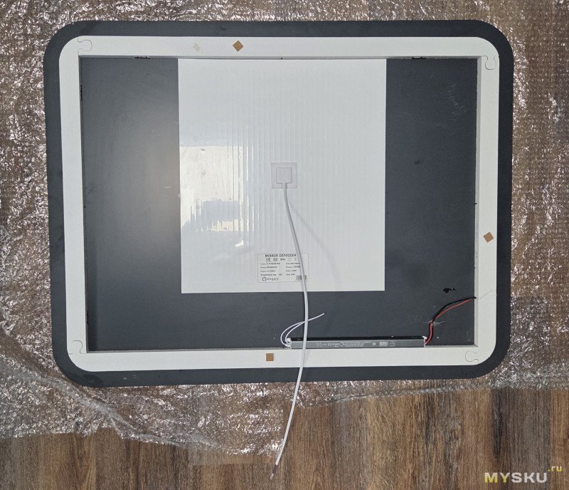 Себе сделал из мата 50*65, купленного в Леруа. Под зеркало моего навесного шкафчика подошло отлично. Но зеркало без рамки, пришлось его отклеить, выфрезеровать в задней стенке шкафчика канал под проводку и приклеить зеркало обратно на нейтральный герметик. Получилась красота!