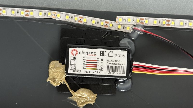 Поверхность зеркала также нагревается до примерно 37 градусов и остаётся такой. Через час работы температура достигла 41 градуса. По мне отличная температура, нет перегрева и нет запотевания.Подключил у себя просто параллельно свету в туалете, без всякой умной автоматики.