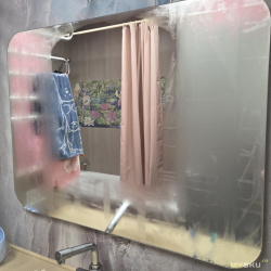 Давно встречал в отелях небольшие зоны незапотевания на зеркале, и хотелось себе что-то такое, только с зоной поболе, и вот оно.