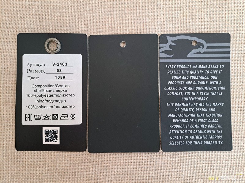 Немного аляповатая этикетка. Ярлычок с размером вшит слегка криво. И как я говорил, на самой куртке нет упоминания о Made in Russia.