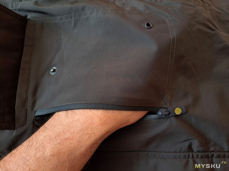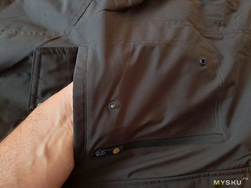 Такие карманы стали популярными не так уж давно. По моему мнению, это более удобная альтернатива внутренним карманам, так как для доступа не нужно расстегивать основную молнию. Только на теплых куртках, такие карманы должны быть утеплены тоже, чтобы ваш смартфон не находился при температуре окружающей среды. Но, к сожалению, на этой модели вообще нет утепленных наружных карманов….