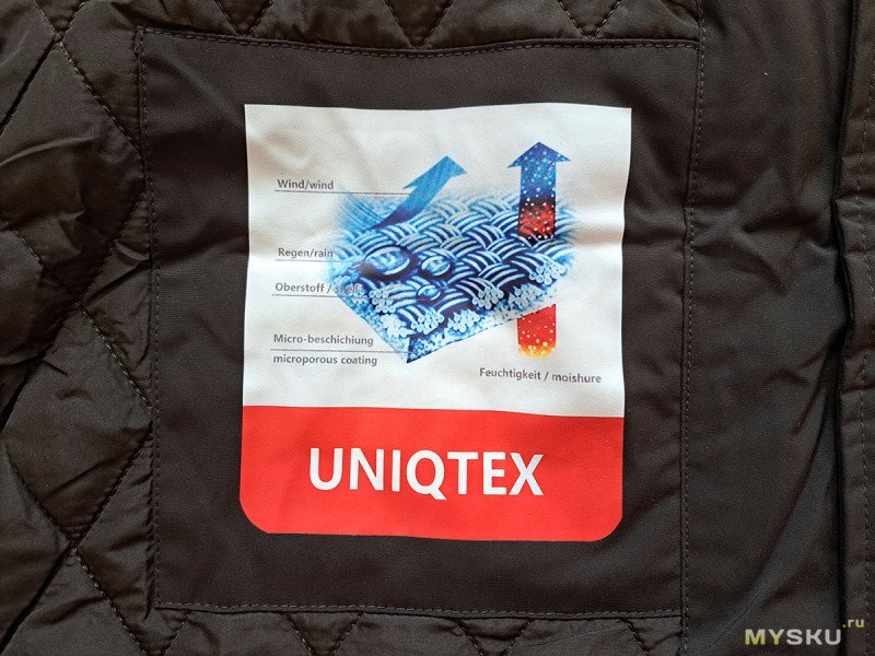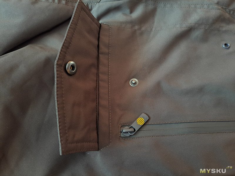 Честно говоря, у меня сложилось впечатление, что куртку шили не в РФ, а закупили OEM в Китае. Поэтому данная этикетка, обещающая водо и ветрозащиту, одновременно с прекрасной паропроницаемостью, мной автоматически игнорируется. У меня есть куртки с подобными этикетками и паропроницаемостью полиэтиленового пакета…