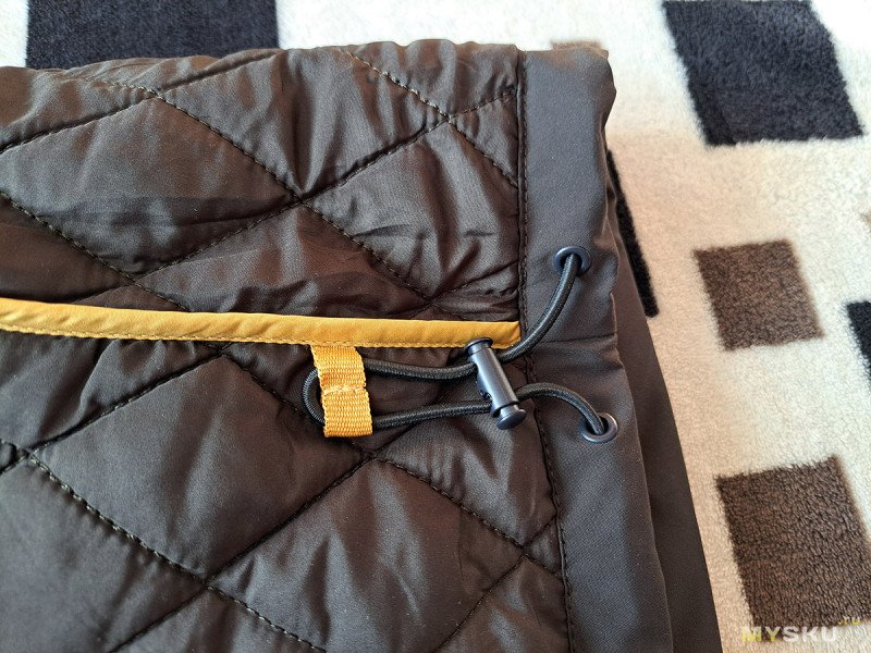 На подоле куртки есть эластичные утяжки. Хорошее решение, а то лично для меня утяжки на поясе, малоприменимы.