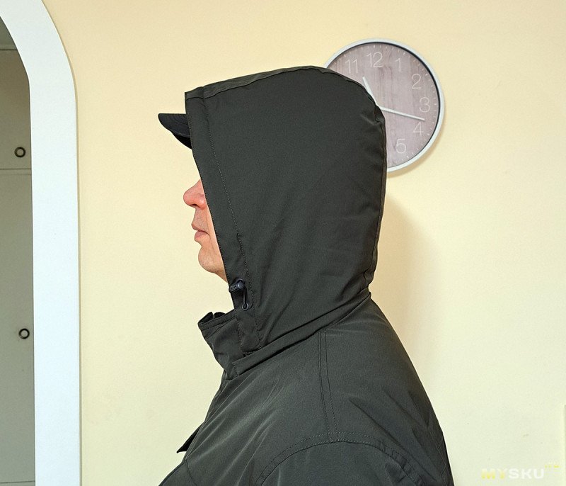 Капюшон и воротник стойка. Вроде практичное решение. Но дело в размерах. Я бы предпочел капюшон чуть побольше, а воротник чуть поуже. Так как голову и шею соответственно, прикрывают они так себе…