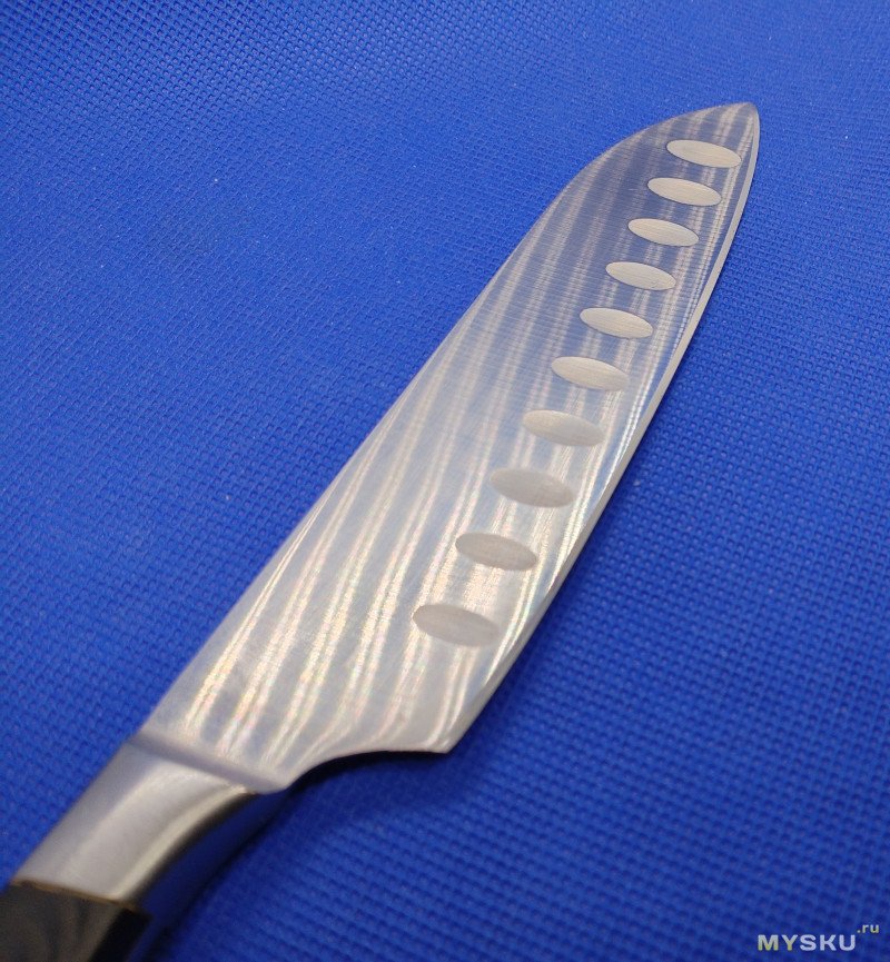 В принципе им и можно пользоваться как опасной бритвой: легко бреет, на весу режет салфетку. Нужна ли такая острота на кухне? Ну вот точно не помешает.