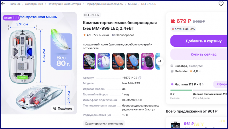 К сожалению сейчас на озоне в основном такие мышки с «геймерской» разноцветной подсветкой. Разбирать чтобы отключить это говно лень, жду пока на нормальные скидка будет.