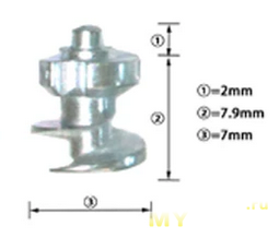 Хвостовик 10 мм, так что можно работать шуруповертом с маленьким патроном.
