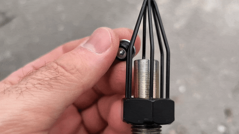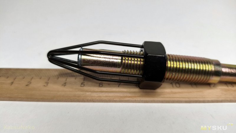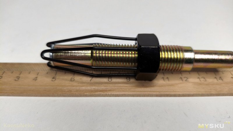 Устанавливать шип неудобно. При наличии магнита, шип в свое место можно установить когда гайка будет на последних витках, подсунув шип между губками.