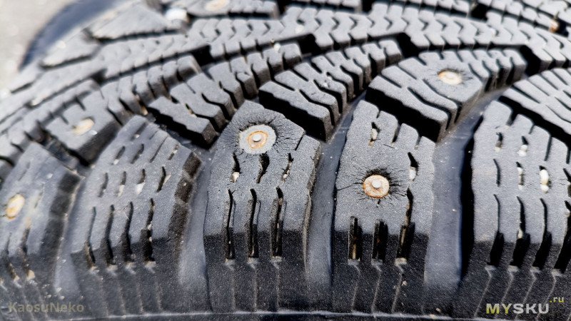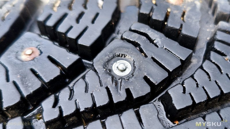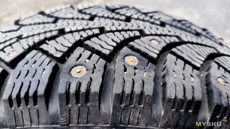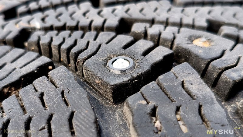 Ниже — шипы, установленные в прошлом году. Ревизия показала, что ремонтные все на месте, выскакивают только заводские.