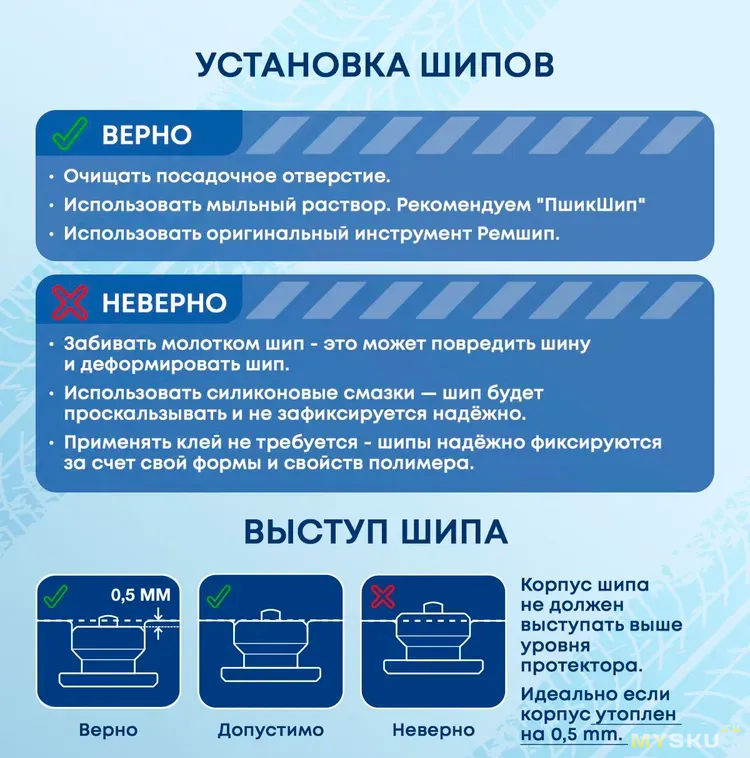 Ремонтные шипы подбираются исходя из остаточной высоты протектора.