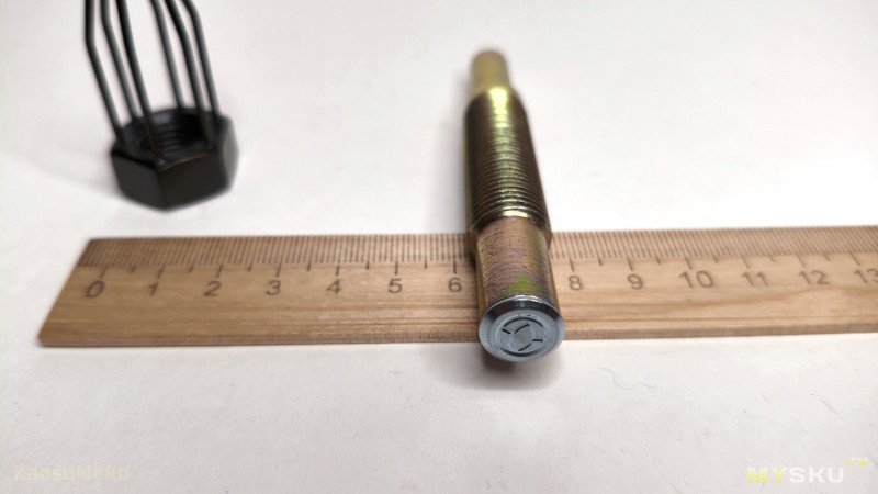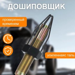 Конструктивно он представляет собой шпильку М14, с проточенным отверстием под шипы и хвостовиком под патрон шуруповерта, а также гайку с приваренными проволочными губками, которые расширяют отверстие в шине. Я и сам могу такой изготовить, но не за такие деньги лень.