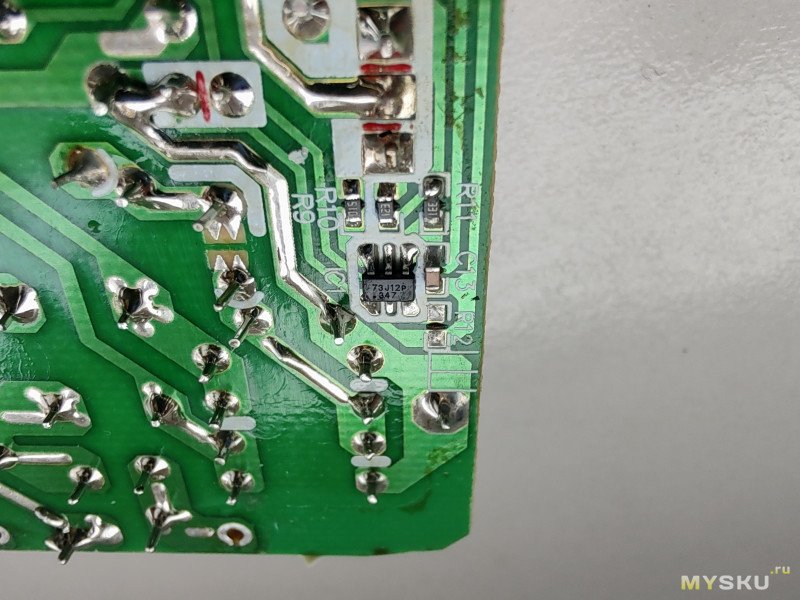 Не стал сильно ковырять элементы — микросхема ШИМ OB2273. На одной плате получилось её считать и сфотать. Конденсатор по ШИМ — 50V/10uF.