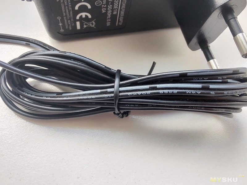 Компактный адаптер — размер примерно 85мм-51мм-28мм. Кабель плоского исполнения на 20 AWG, длина 1.5 метра, штекер 5.5х2.1мм. Носик стандартной длины. Для понимания габарита сравнил с адаптером Sagemcom 12V — 2,5А.