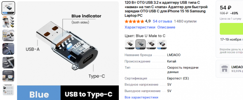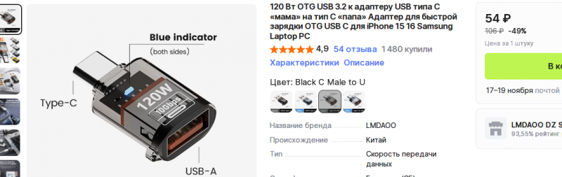 переходник с тайпси на усби можно на али купить за 50р