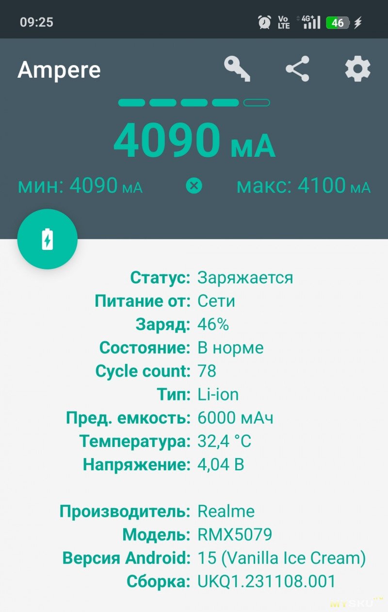 Полностью высаженный аккумулятор + ЗУ от смартфона Realme P3 (45W, SuperVooc) — через 4 часа заряжено на 100%.