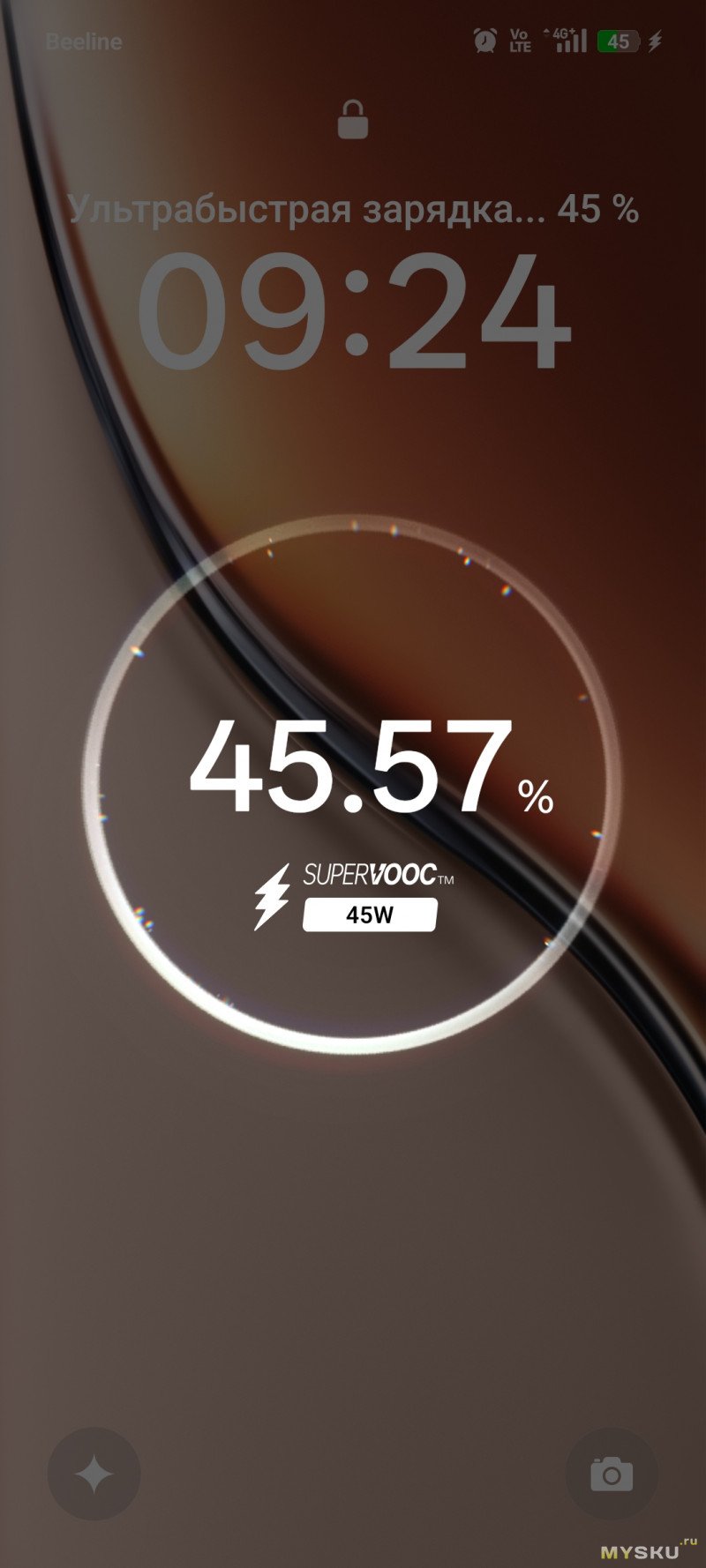 Кабель «комплектный» от смартфона (он гарантированно работает с «протоколом»). Как только подключаю внешнюю АКБ — срабатывает, показывает зелёную молнию на экране АКБ и на смартфоне появляется значок SuperVooc. Через полминуты — значок пропадает, и молния отключается