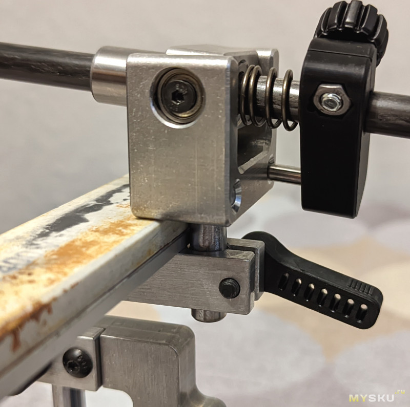 Расстояние между штоком и камнем минимальное. Регулировка положения задней части держака (под длину камней) удобная и быстрая.