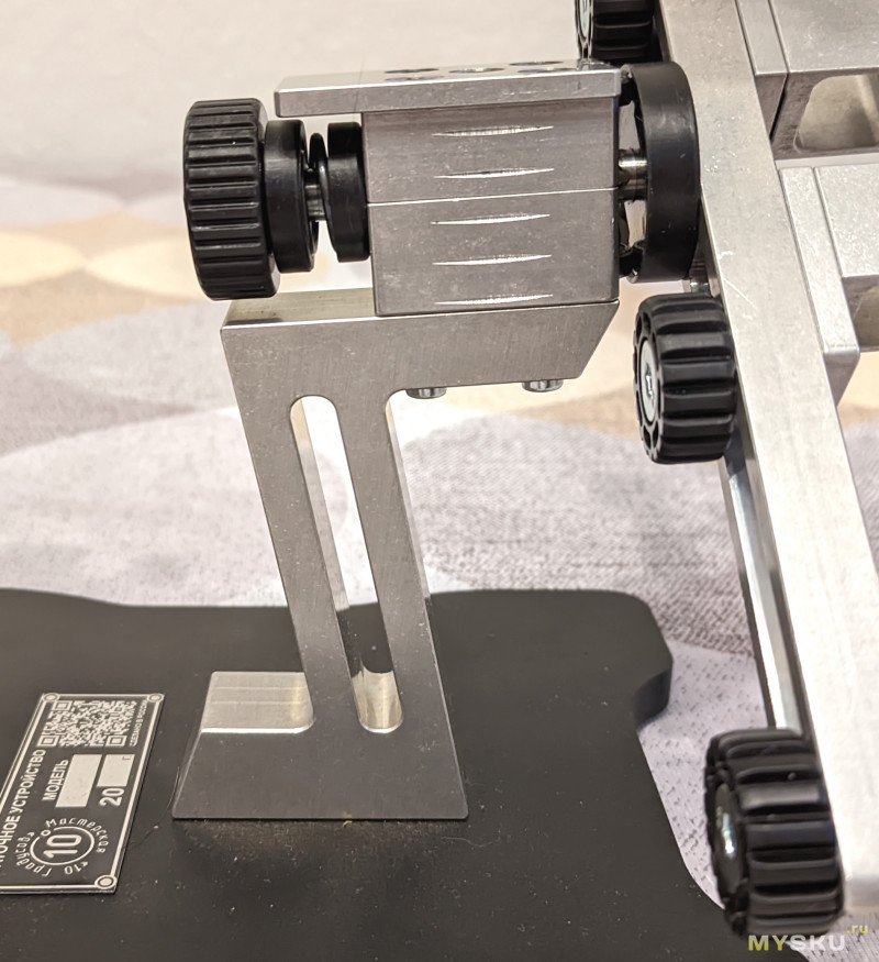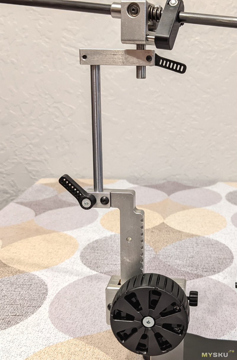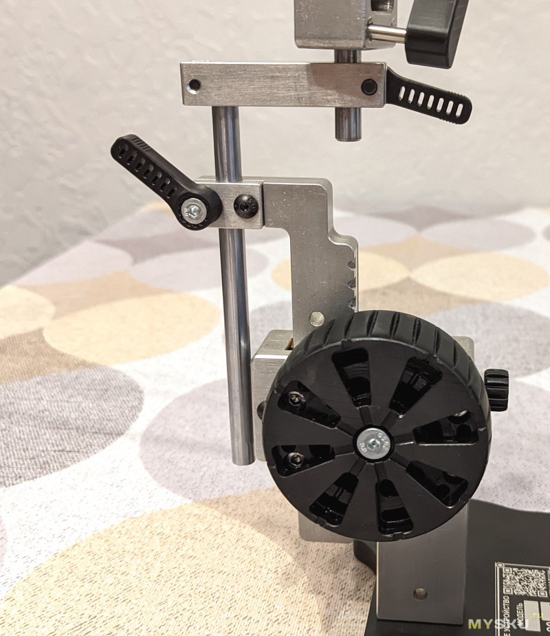В работе на максимальной высоте никаких шатов и расхлябанностей нет, специально ехал на выставку шатать Гуся и делал это от души (рядом стоящие только у виска пальцем не крутили в мою сторону). Ну и сегодня я точил на этой «верхотуре» ножницы — всё работало, как задумано.