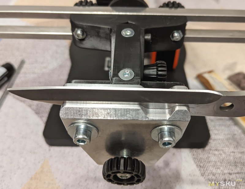 Теперь при попытке заточить нож подвод с одной стороны допустим получается 1,5мм а при перевороте 0,5мм.