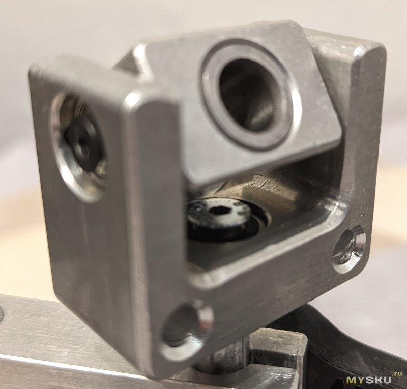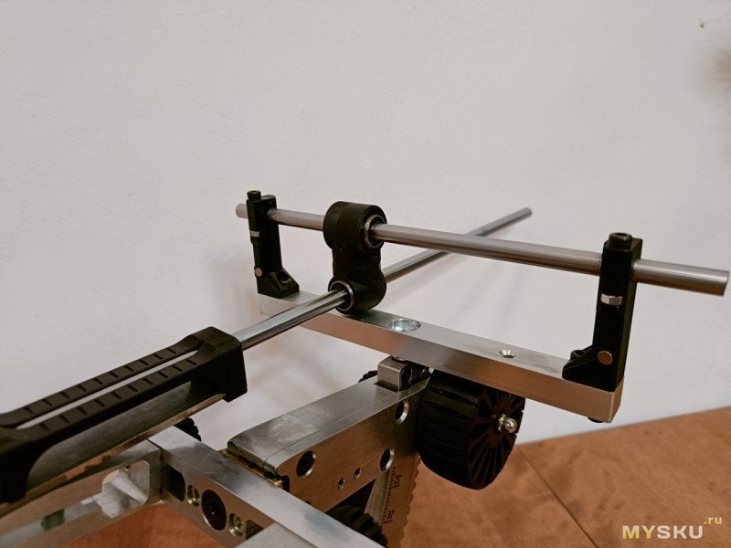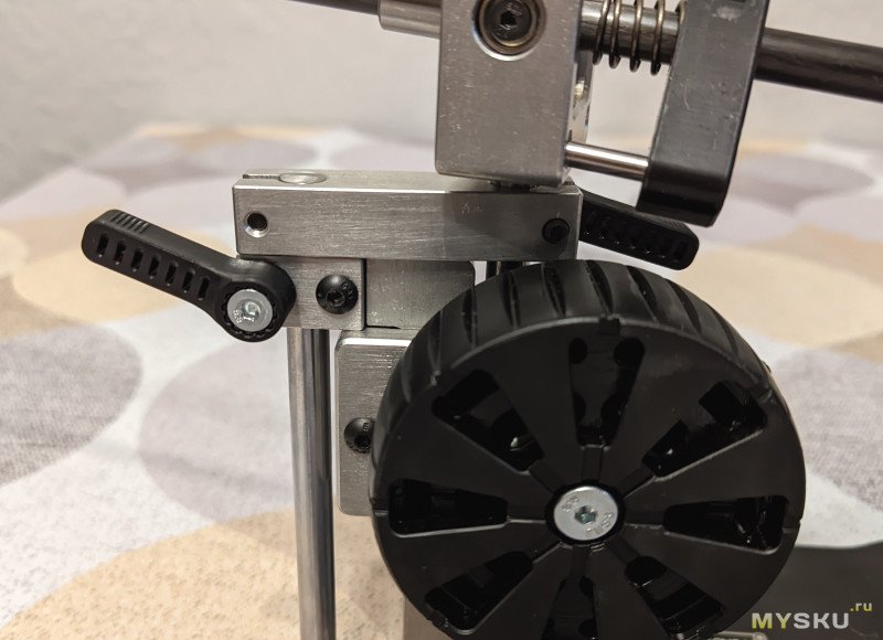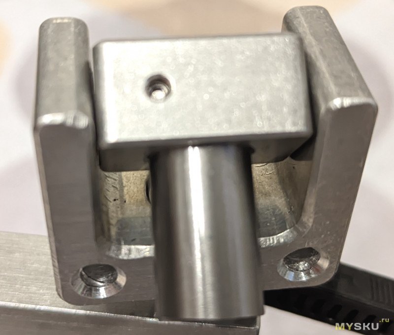 В работе на максимальной высоте никаких шатов и расхлябанностей нет, специально ехал на выставку шатать Гуся и делал это от души (рядом стоящие только у виска пальцем не крутили в мою сторону). Ну и сегодня я точил на этой «верхотуре» ножницы — всё работало, как задумано.Узел скольжения, он же УС, она же «голова».