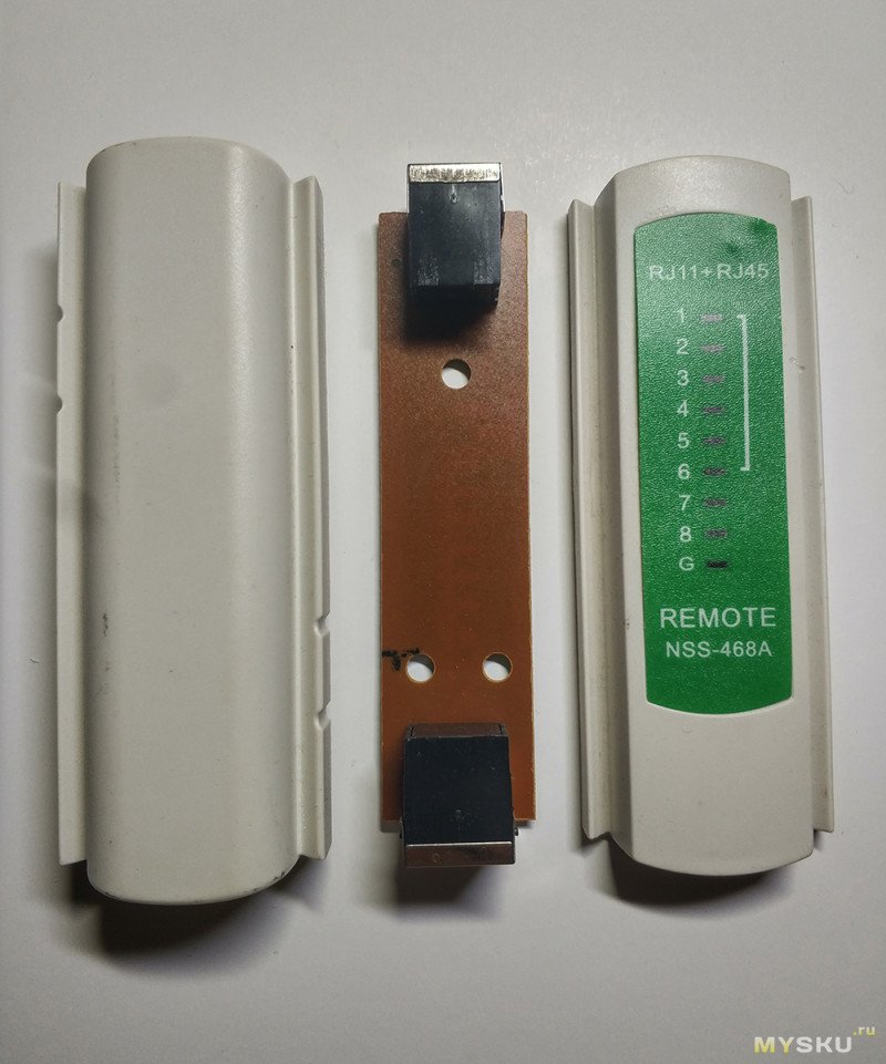 «Железнячники» рассказывали что в совсем уж старые времена кабель («хвост», лежащий на столе) на исправность проверяли двойной RJ45, тыкая мультитестером в режиме прозвонки параллельно по контактам расшивки в розетке. Не было у них тогда даже элементарной прозвонки «бегущий огонёк», как в обзоре.