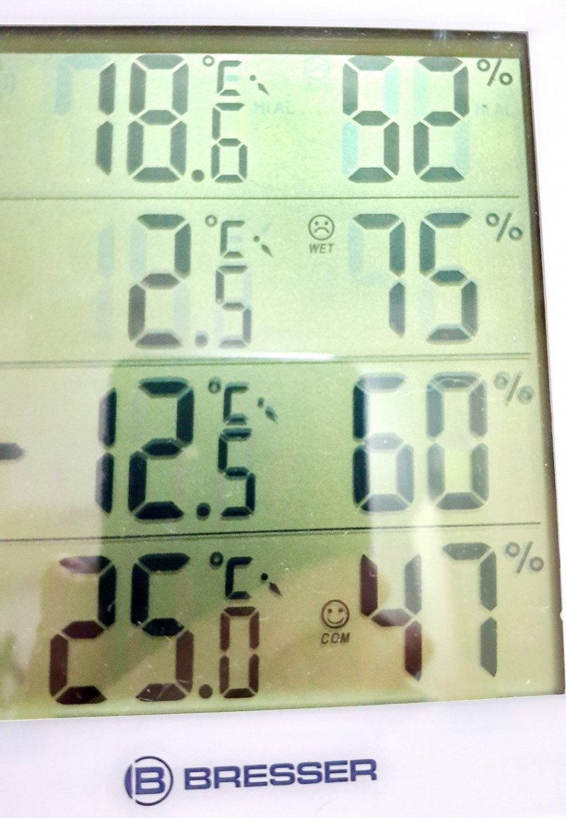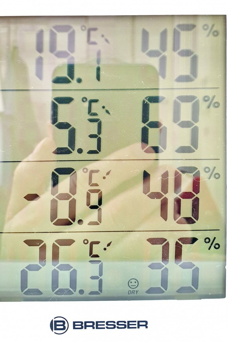 В качестве измерительного прибора выступила метеостанция Bresser Temeo Hygro Quadro, четыре канала измерений — один в самом приборе, три выносных зонда.