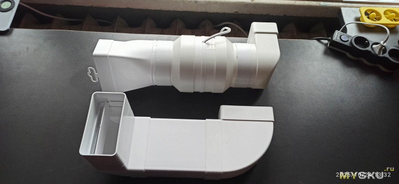 установка стоит в ванной (отгороженный угол), разводка гибкими воздуховодами.