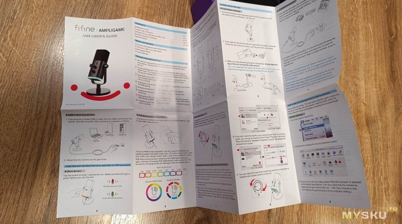 Инструкция напечатана на качественной ламинированной бумаге. Она хорошо иллюстрирована и подробно описывает все возможности микрофона. Полиграфия на высоте. Недостаток только один — перевода на русский нет.