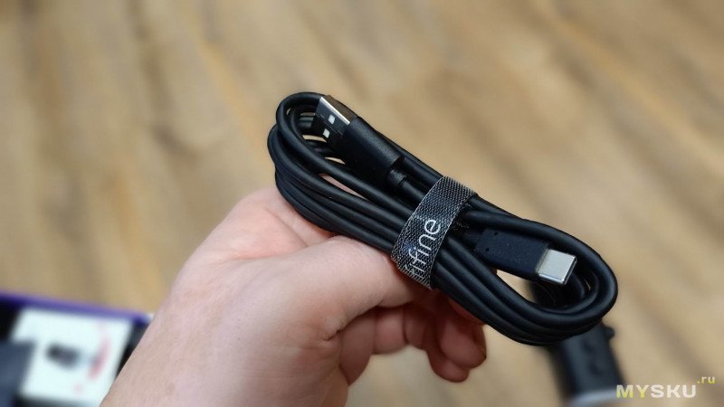 Кабель с разъёмами Type-C на конце микрофона и USB-A на конце для подключения к ПК, длиной 2 м, имеет фирменную липучку для компактного хранения.