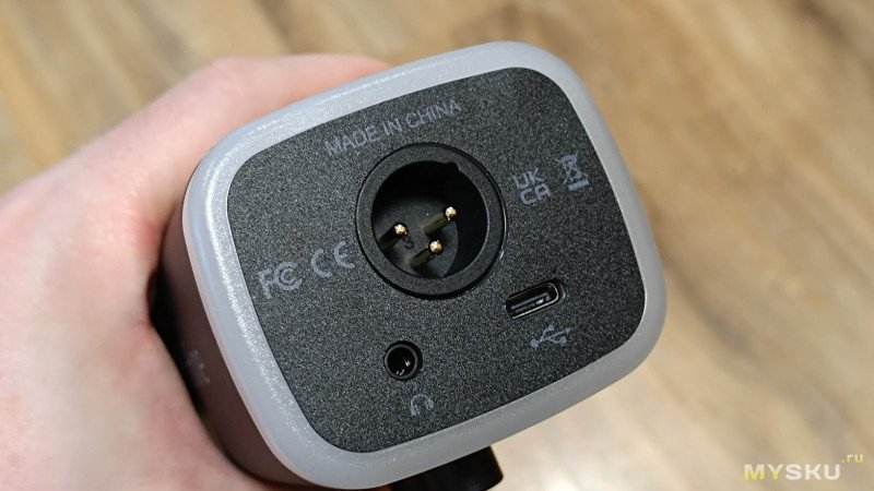 В нижней части корпуса находятся разъёмы для подключения: порт USB Type-C, XLR и jack 3,5 мм для наушников.