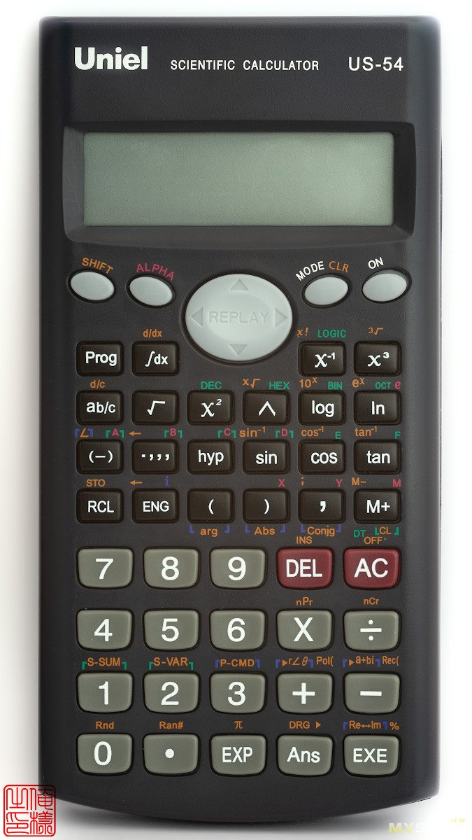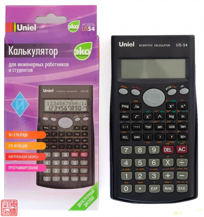 Увидев на коробке надпись про «279 функций», на которые способен Uniel US-54, достопочтенный читатель наверняка подумал что-то вроде «Вот это мощь! Да мне за всю жизнь столько не использовать!». Жаль вас разочаровывать, но «функции» в калькуляторах совсем не таковы, как многие их себе представляют. Если подойти к вопросу с умом, окажется, что «ввести цифру 1» — вполне себе функция, а цифр на клавиатуре целых десять. Да что там, даже включение/выключение калькулятора тоже функция, причём важнейшая. А при творческом осмыслении – даже целых две.