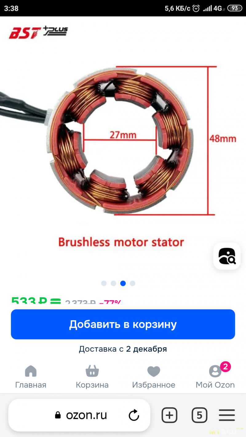 Приобретался комплект так сказать на пробу для своих будущих самоделок. Двигатель приходит в разобранном состоянии(ротор и статор держится только на магнитном поле) и поэтому чтобы проверить в работе связку BLDS-плата управления-пульт управления необходим корпус для двигателя. Статор двигателя типоразмером 4815 в диаметре 48мм. и длиной 15мм. Ротор на двух подшипниках.