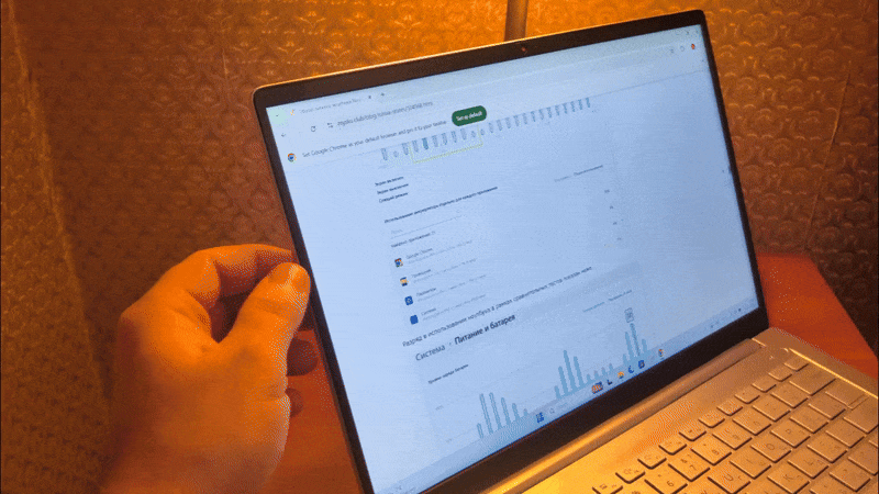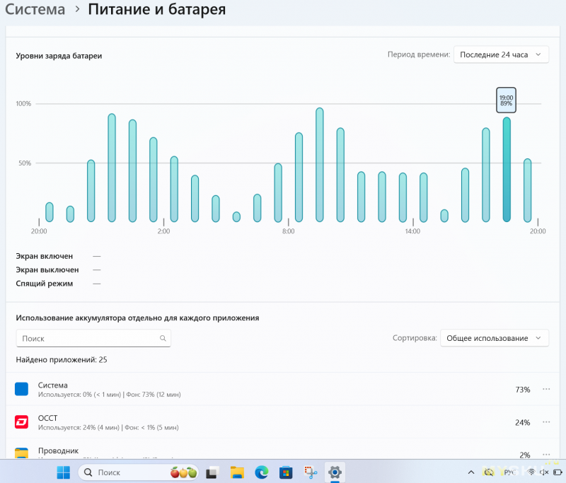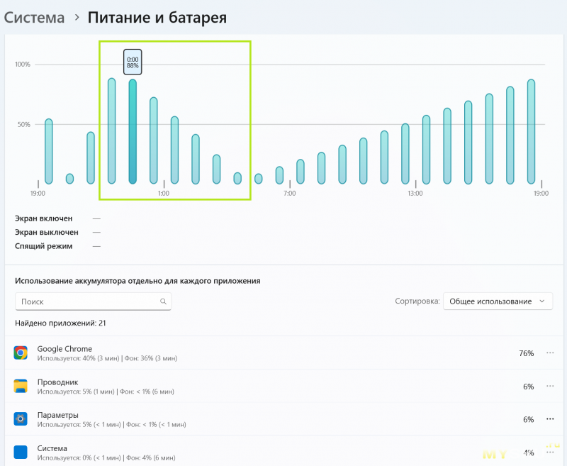 Разряд в использовании ноутбука в рамках сравнительных тестов показан ниже. В характеристиках заявлена автономность в 8 ч. Не получить можно, но только с перерывами. Приведенные ниже и выше результаты были получены без выключения ноутбука или перевода его в спящий режим.