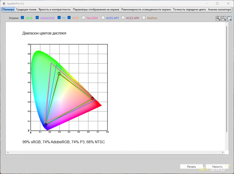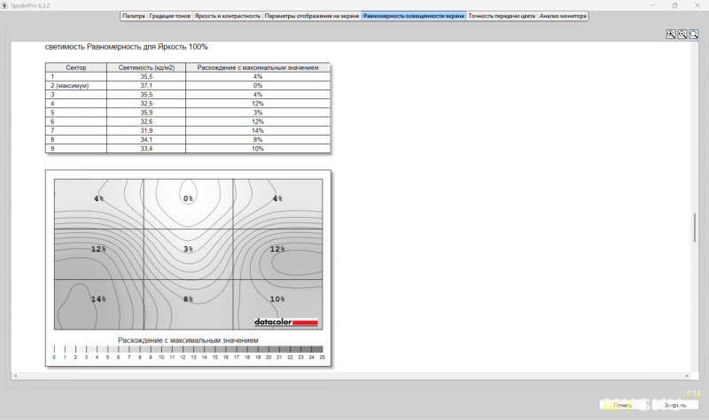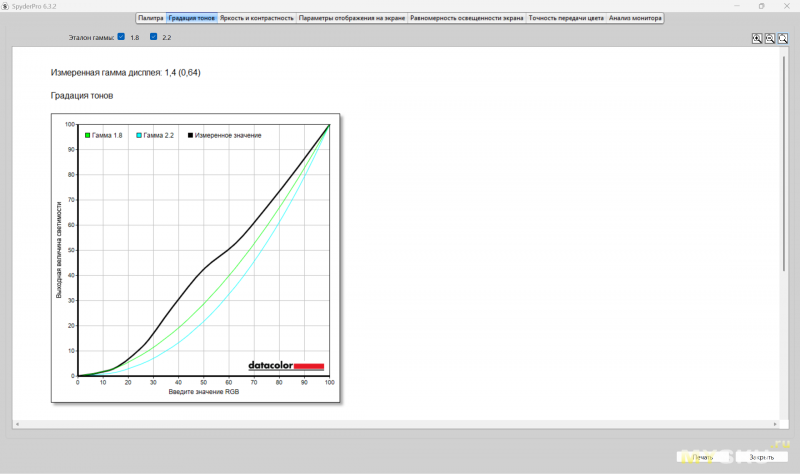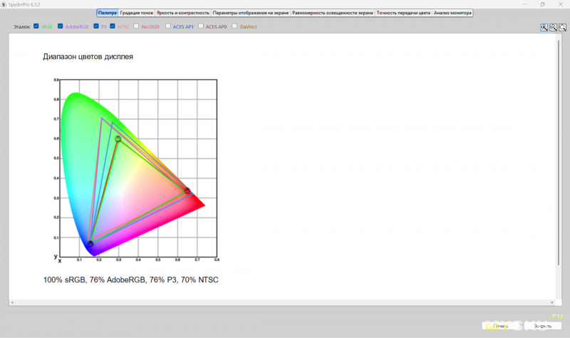 Оценил качество экрана с помощью datacolor Spyder pro. Итоговая оценка получилась равной 4,0/5,0 баллам. У товара Chuwi цифра получилась ниже — 3,5/5,0. Под спойлером ниже привел скриншоты с оценками второго.