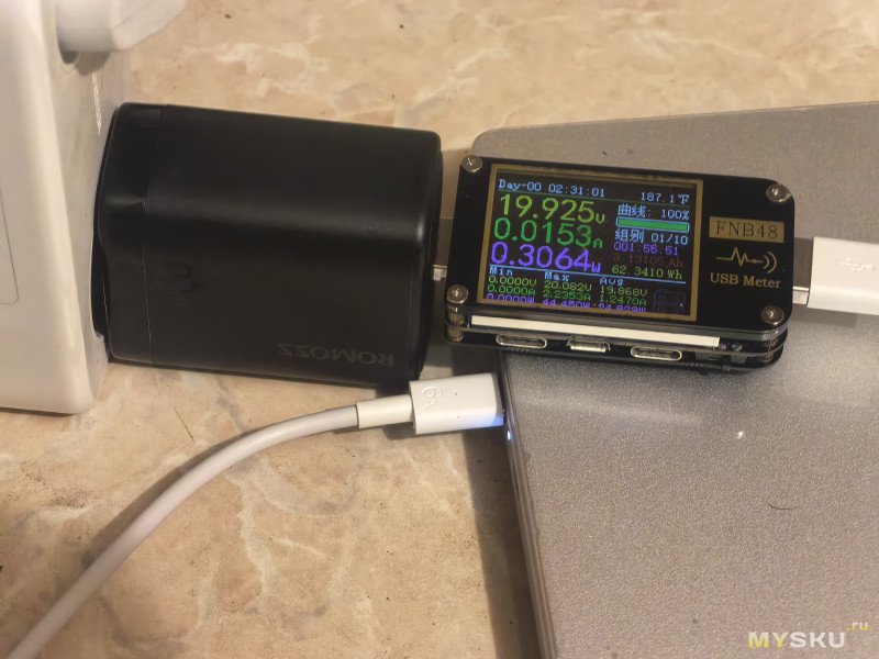 Конечно, проверил, пойдет ли заряд от 5V. Нет, заряд от такого маленького напряжения не происходит. У меня есть ЗУ Romoss NH251A с 20V на USB-A. Заряд пошел только после принудительного включения QC, поэтому если использовать сторонние ЗУ, то лучше только с USB-C. Время заряда не изменилось и в этом случае.